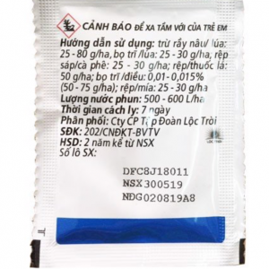 | Rầy nâu | – Pha 40-80 g/ha – Pha 1 g/bình 8 lit – Phun đều 4-6 bình 8 lít/1.000m2 |
